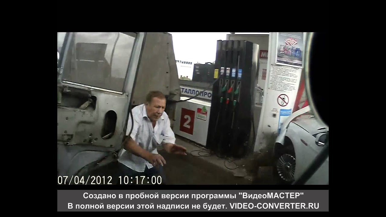 Деду на заправке повезло, и водитель сразу по тормозам дал.
